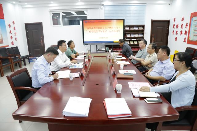 9月22日,阜阳师范大学物理与电子工程学院党委书记吴学军一行来访我院进行考察交流,茄子视频 党委书记高金华、院长王明红、党委副书记吴成、副院长张霞等参加座谈会。