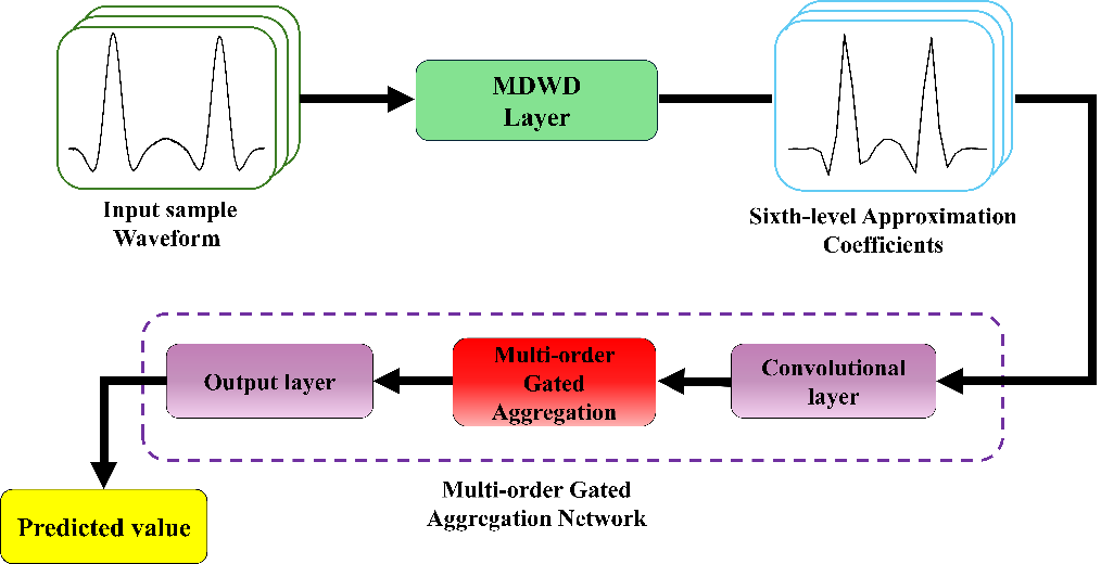 团队提出了一种多级离散小波分解辅助的轻量级多阶门控聚合网络(MDWD-LiteMogaNet)模型,巧妙地解决了高分辨率光谱数据处理中高维度和高计算复杂度的难题,同时显著提升了气体浓度检测的精度和抗噪性能。多级离散小波分解在完整保留数据核心特征的基础上,将数据维度从 1240 个特征点高效压缩至 26 个,降维比例高达 98%。模型的 MACs 低至 0.003 GFLOPs,平均绝对误差低于 2.02 ppm,平均相对误差低于 1.12%。这一成果为复杂环境中的气体检测提供了一种高效、轻量级的深度学习解决方案。该成果发表于《Analytical Chemistry》(《分析化学》,中科院一区TOP,影响因子6.8),2022级电子信息工程专业本科生李正卓为论文第一作者,朱存光副教授为通讯作者,茄子视频 为第一署名单位。
