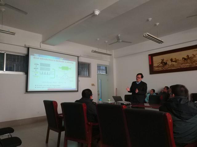 12月20日,华中科技大学孙军强教授在西校区10号楼A210会议室为茄子视频 的师生做了“受激布里渊散射及其应用”的学术报告。学院相关专业老师、研究生和部分本科生参加了报告会。