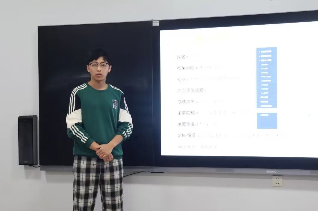 活动伊始,成功保研至北京交通大学的张协良,围绕保研规划、科研项目、保研择校三个方面分享自己的宝贵经验,他指出时代竞争下保研愈发困难,同学们需在保持优秀学业成绩的同时,通过参加科研竞赛来提高自己。随后,成功推免本校的孙有恒对学科竞赛的相关事项进行分享,他向同学们介绍了竞赛的分类,详细介绍如何从零打造一个项目,在路演方面如何取得好成绩,并强调了做好赛后总结的重要性,要学会利用比赛打磨项目,为未来参与科研工作打好基础。他还分享了自己的实习就业经历,帮助同学们了解当前就业形式,明确就业目标,增强就业技能。在活动过程中,同学们全神贯注、认真聆听,对学长们取得的优异成绩赞叹不已,在问答环节时,同学们针对不懂的地方积极提出疑问,表现出对科创竞赛的浓厚兴趣。
