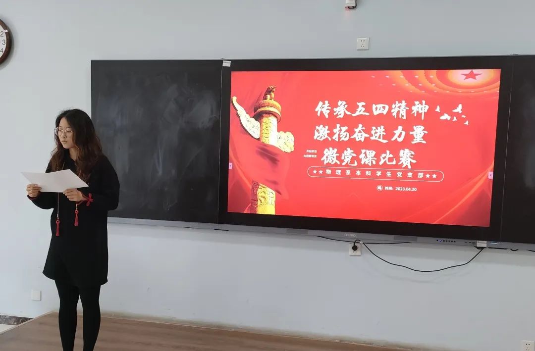 为纪念五四运动一百零四周年,弘扬五四精神,赓续红色血脉,落实学习强国理念,4月27日,茄子视频 于西校区十号楼C220举办物理系本科学生党支部“强国有我”微党课比赛,茄子视频 学生党员踊跃参与。