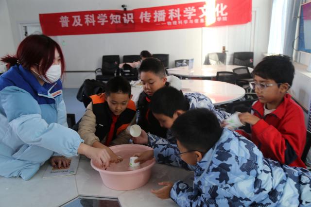 活动伊始,志愿者针对“空气是否占据空间”这一问题进行了详细的讲解,通过生动有趣的课程向小朋友们介绍了关于空气的一些基本物理概念。课程由提问的形式顺利进行,在面对志愿者们的各种问题时,小朋友们积极举手,大胆的表达出自己的想法,他们求知的热情使课堂氛围变得活跃。在授课过程中,志愿者们运用所学的知识向小朋友们讲解了空气占据空间的原理,并将这些简单的物理知识融入到生活常见的事例中,激发小朋友们的好奇心,引导他们多观察生活,多动脑筋。接着志愿者和小朋友们共同完成了一个关于空气的小实验,实验中小朋友们通过仔细观察实验现象、认真思考的步骤,增加了对实验原理的认识。
