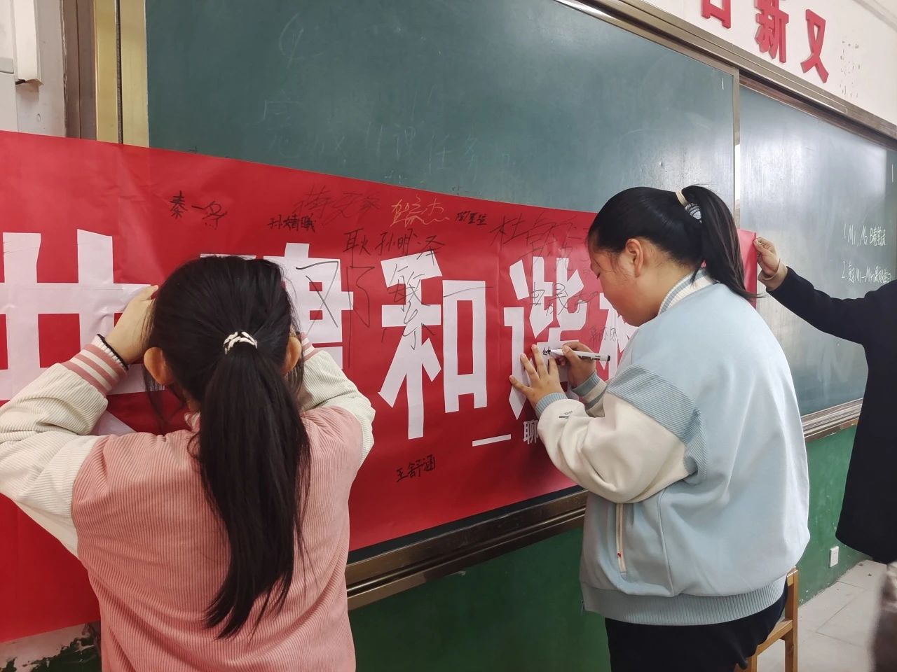 活动伊始,大学生志愿者们通过生动地讲解,向小学生们传达了拒绝暴力、维护校园和谐的重要性,生动介绍了校园暴力的种类、危害以及如何预防和自我保护的方法。志愿者们鼓励小学生们要勇敢地说“不”、学会倾听他人、尊重每一个人的权利和感受,共同营造一个积极向上、友善和谐的学习环境。在案件分析环节,志愿者们引导孩子们认识到暴力行为的危害性,教育他们要主动发现和制止任何暴力行为,并学会寻求帮助和解决问题的方式。学生们认真思考、积极参与活动,纷纷表达了对和平与友爱的向往和对校园暴力的排斥,展现出了积极向上的精神风貌。最后,同学们在宣传横幅上签字,活动圆满结束。
