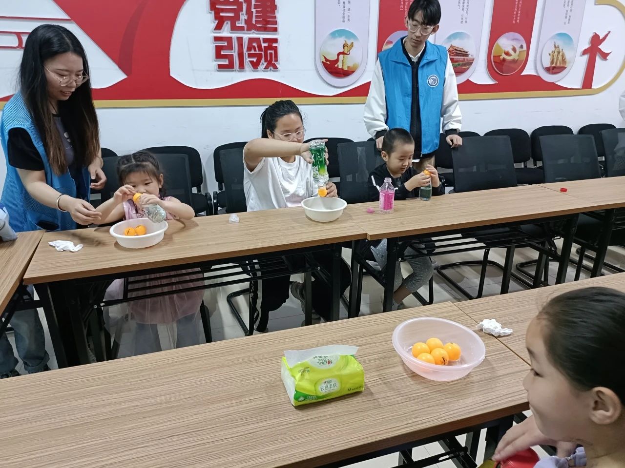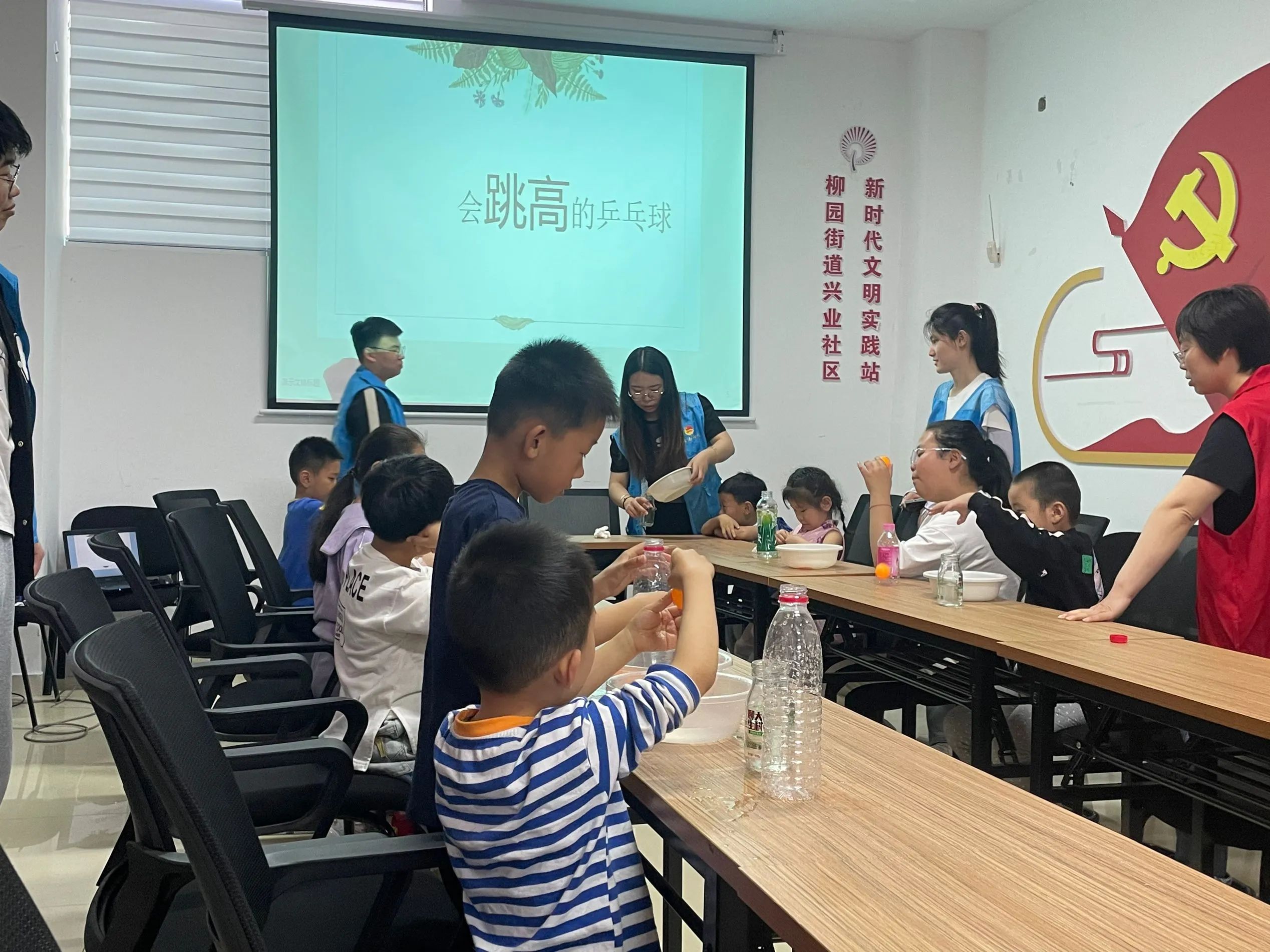 本次活动围绕“不会掉的乒乓球”和“会跳高的乒乓球”两个小实验展开。在活动开始之前,志愿者们分组行动,准备好相关实验器材,并打扫、布置了实验场地。活动伊始,志愿者们通过实验操作来提出问题“为什么乒乓球不会掉下来”,引导小朋友们积极思考,激发他们的好奇心。志愿者通过PPT展示,向小朋友们讲解了实验的相关原理,在他们的帮助下,小朋友们通过亲身实践,发掘出实验背后的奥秘,也在操作过程中,大大提高了动手能力。随后,在“会跳高的乒乓球”小实验讲解过程中,小朋友们转变思维、逆向思考,汲取上一个实验所获得的经验,与志愿者们积极互动,大家都沉浸在科学探究的氛围中。活动结束时,志愿者们纷纷表示将提升自己的知识储备,并继续为小朋友们提供更加优质的课程。