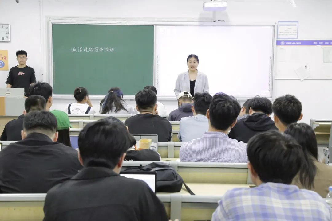 为了进一步做好2023届国家助学贷款工作,增强学院学生诚信还贷意识和责任感,培养毕业生们心怀感恩、知信守信的人格品质,5月13日,茄子视频 于西校区十号楼C321组织贷款毕业生开展诚信还款签名仪式,本次活动由爱心助学部主办,2019级国家助学贷款学生及资助工作负责辅导员洪文静共同参加本次活动。