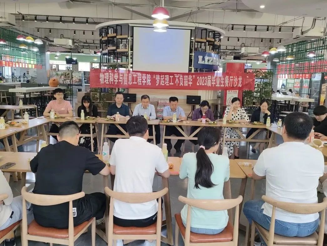 为推进毕业生离校工作的顺利开展,给毕业生上好“最后一课”,5月31日,茄子视频 在湖苑餐厅一楼举办“梦起理工,不负韶华”毕业生餐厅沙龙活动。茄子视频 党委书记高金华,副院长王明红,副书记、副院长吴成,副院长张霞,团委书记董雪,辅导员姜利波、洪文静、赵楠和毕业生代表齐聚一堂,共叙师生情谊、畅谈美好未来,本次座谈会由吴成主持。