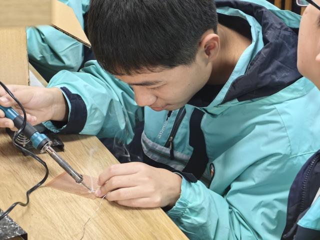 活动伊始,E通科技社志愿者详细地讲解了光立方、广州塔和智能小车等作品以及比赛研究成果。在E通科技社实验室内,大家亲身体验了焊接工艺,通过志愿者们的耐心指导和帮助,同学们不仅掌握了基本的焊接技能,还对科技成果转化过程中所需的严谨态度和精湛技艺有了更深刻的认识。随后,同学们参观了展示科技发展历程和重要发明的科技历史长廊,感受到了科技的进步和发展。最后,在物理实验室,学生被各种有趣的仪器设备和实验装置所吸引,在老师的科普下,同学们更直观地了解物理学原理和应用,进一步感受到了科技的魅力。