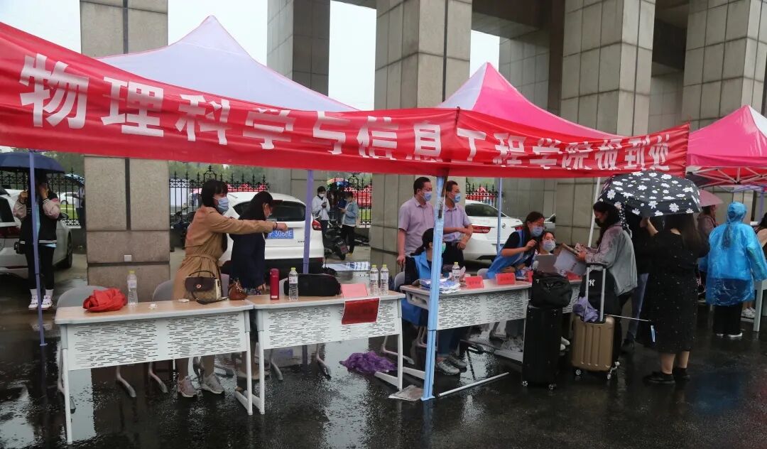 9月4日是2021级首批新生报到的日子,一大早就下起紧密的雨水,为迎新工作增加了不少难度。尽管如此,茄子视频 的老师和志愿者们依旧在东校和西校新生迎接服务点等待着新生们的到来。
