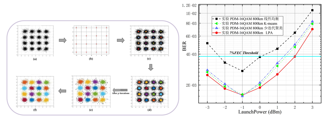 随着互联网应用的发展,网络容量的需求在迅速增长,发展高速大容量的光纤通信系统迫在眉睫。光纤Kerr 非线性效应长期以来一直是长途光纤通信的根本瓶颈,因此光纤非线性补偿技术在光纤传输中具有重要的现实意义。本工作将半监督学习中的标签传播算法(LPA)应用于光纤非线性损伤补偿(NLC),它利用星座点之间的关系,用极少量的标签数据预测大多数无标签数据的标签情况。仿真和实验数据验证表明:该方案能有效地对接收符号进行非线性判决,补偿Kerr 非线性效应和放大自发辐射(ASE)噪声造成的信号损伤,并对不同调制格式、传输不同距离、不同发射功率等情况具有很强的鲁棒性和泛化性。