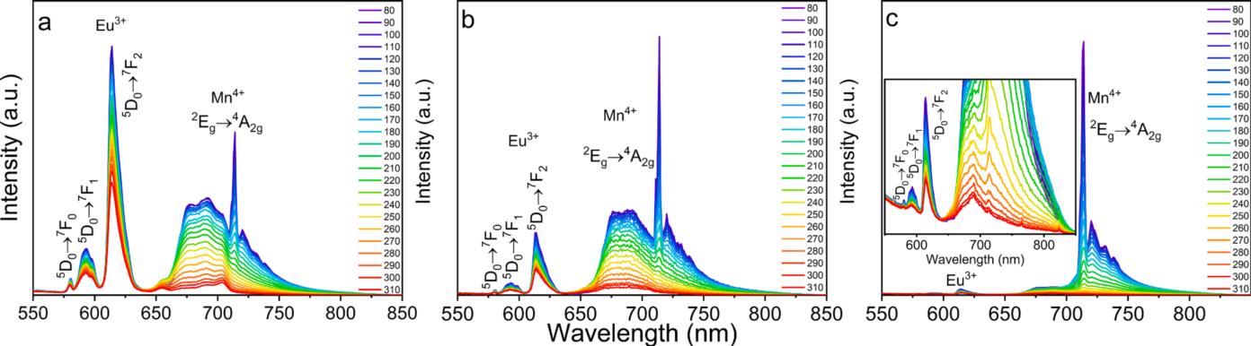 图1 不同Mn4+掺杂下,ZnTiO3纳米晶的荧光温度特性