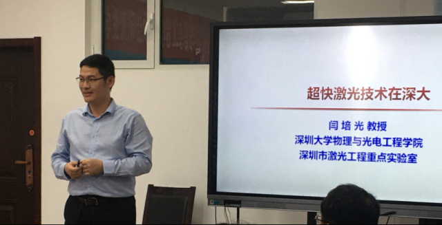 2023年5月19日下午,应茄子视频 邀请,深圳大学物理与光电工程学院闫培光教授来我院进行学术交流,并做了题为《超快激光技术在深大》的学术报告。学院相关专业老师、部分研究生参加报告会。