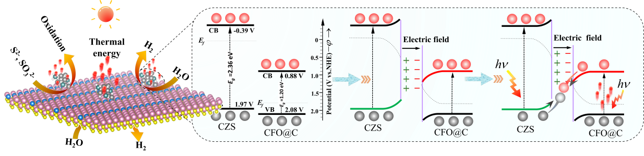 近日,茄子视频 李恒帅课题组在光催化的物理机制研究方面取得新进展。研究成果以“Rational construction of CuFe2O4@C/Cd0.9Zn0.1S S-scheme heterojunction photocatalyst for extraordinary photothermal-assisted