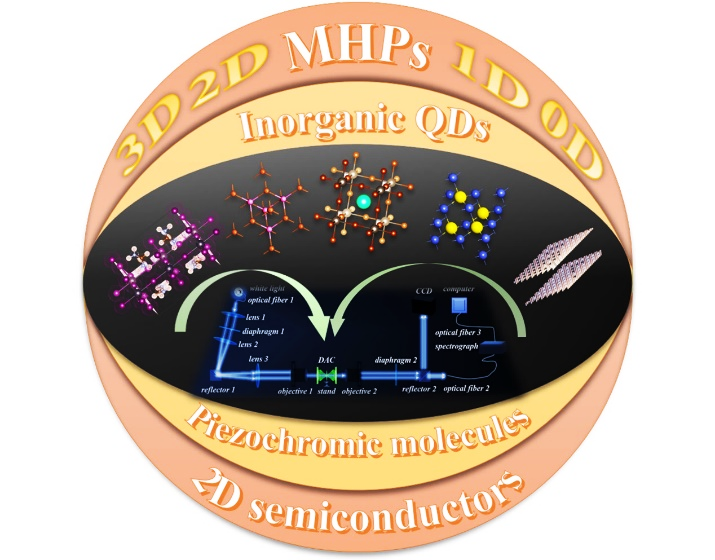 进展三:近年来,压力诱导带隙调节作为一种新颖而有效的手段,揭示了固有能带性质和深层结构-性能的关系。基于几种典型的半导体材料,包括金属卤化物钙钛矿、无机量子点、压致变色分子化合物和二维半导体材料,刘才龙教授团队概述了利用显微稳态紫外-可见吸收光谱技术的压力诱导带隙响应的系列研究,总结了高压条件下结构对带隙演变的影响以及带隙工程的一般原理,为环境条件下的材料设计提供指导。相关研究成果以“A review: comprehensive investigation on bandgap engineering under high pressure utilizing microscopic UV-Vis absorption spectroscopy(评论:关于利用微区紫外-可见吸收光谱技术在高压下进行能隙工程研究的综合调查)”为题发表在《APL Materials》(《APL材料》)上。2021级硕士生陈林为论文第一作者,张海娃博士、李茜教授和刘才龙教授为共同通讯作者,茄子视频 为唯一署名单位。