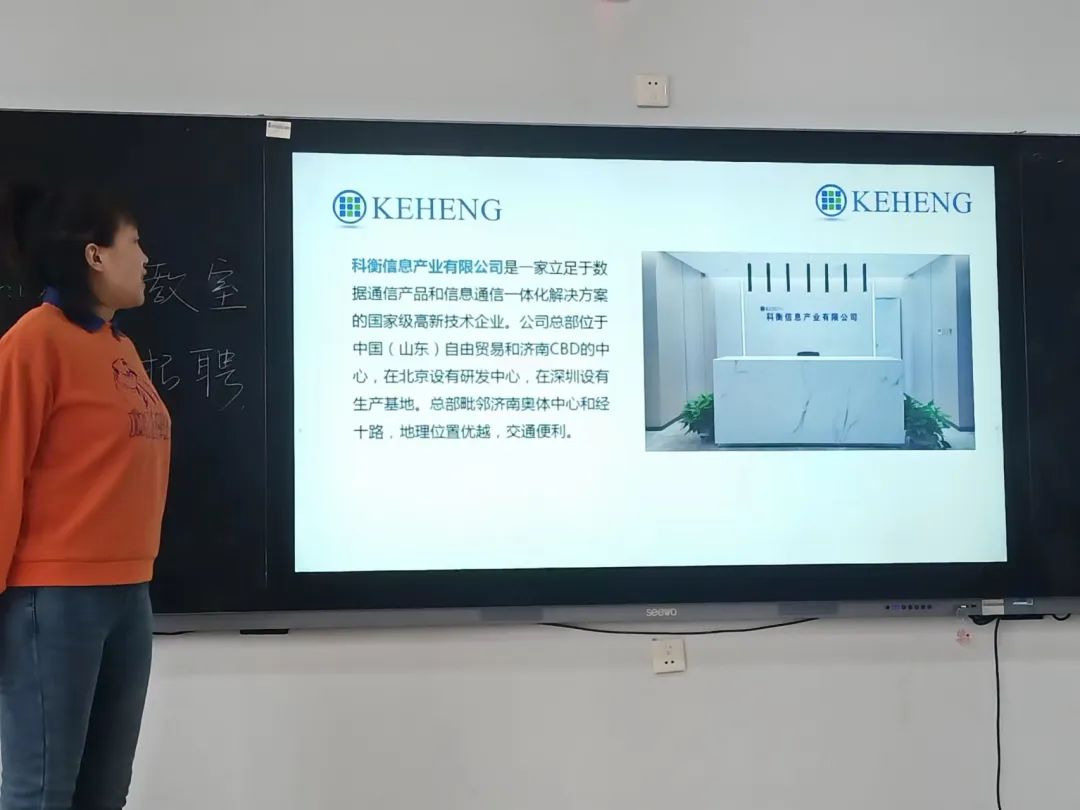 其次,老师介绍了科衡公司的追求及科衡作为技术型企业的特点,展示了科衡公司全面的人才环境以及温暖的工作氛围,激发了同学们的就业积极性。此外,老师放眼整个科衡公司的产品,展示了系统的高端性和在未来发展中的优势,深深地吸引了同学们的关注;最后,老师再次重申科衡是个年轻的团队,是能力与舞台的结合并且期待同学们加入这个温馨的大家庭,此次招聘会在融洽的氛围中圆满结束。